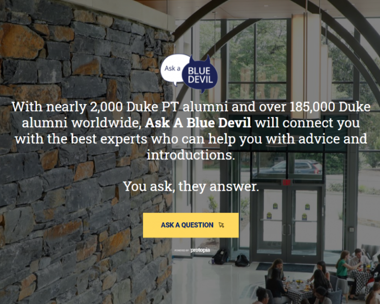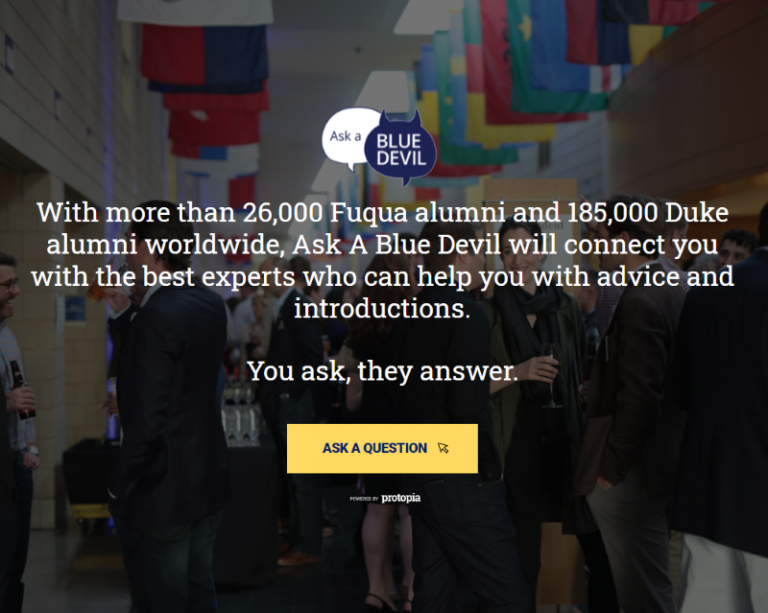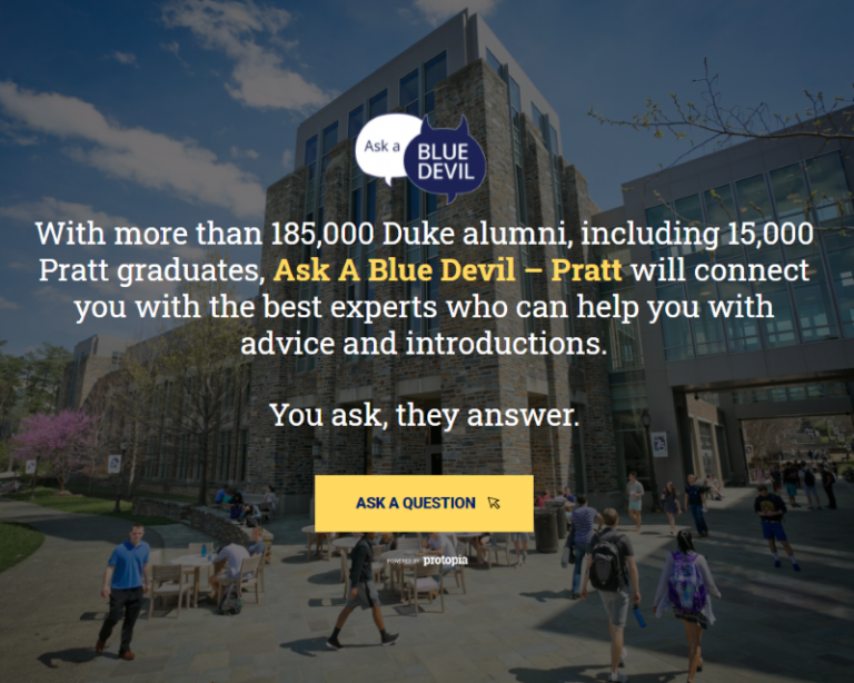 Duke University partnered with Protopia in 2018 to revolutionize how Blue Devils connect for advice and networking. Read the Duke University case study.